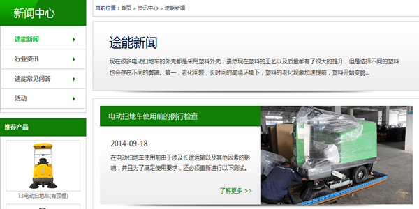 1.網(wǎng)站VI風(fēng)格詮釋: 要購(gòu)買(mǎi)清潔設(shè)備的客戶(hù)一般都希望能用它打掃干凈、徹底,整個(gè)網(wǎng)站選用綠色和藍(lán)色(因?yàn)楣臼羌O(shè)備研產(chǎn)銷(xiāo)于一體,所以還采用了藍(lán)色,體現(xiàn)科技,表示產(chǎn)品質(zhì)量不錯(cuò)),從客戶(hù)進(jìn)入網(wǎng)站的第一時(shí)間起,讓客戶(hù)潛在的知道途能的清潔設(shè)備節(jié)能環(huán)保的高科技產(chǎn)品。