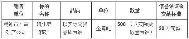 騰沖市恒益公司關(guān)于鋅精礦競價銷售公告(201901)號