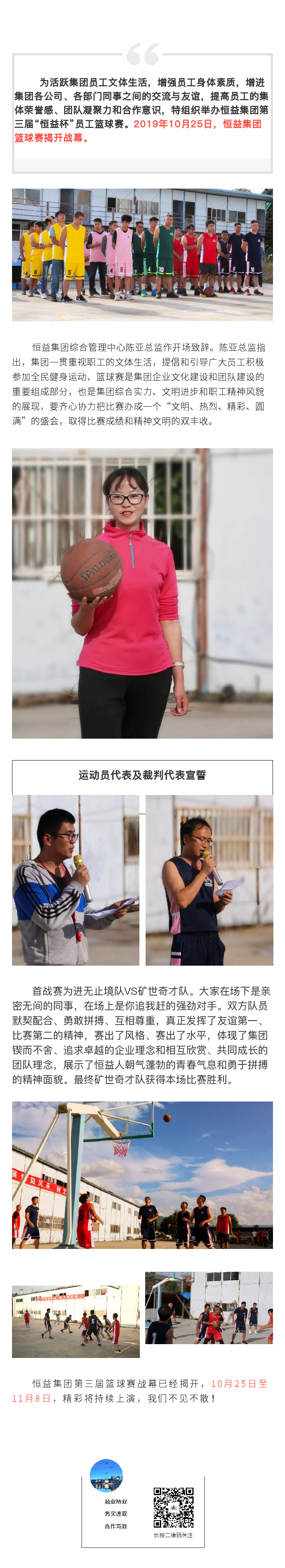 恒益集團(tuán)第三屆籃球賽揭開戰(zhàn)幕 來源: 瀏覽量:8997 日期:2019-10-25 分享到: 上一篇:蒙古第八批高中級領(lǐng)導(dǎo)干部考察團(tuán)蒞臨高黎貢文化創(chuàng)意產(chǎn)業(yè)園區(qū)參觀考察 下一篇:緬甸聯(lián)邦商務(wù)部長吳丹敏等“緬中邊境經(jīng)濟(jì)合作區(qū)中央委員會”領(lǐng)導(dǎo)調(diào)研甘拜地邊境經(jīng)濟(jì)合作區(qū)項(xiàng)目