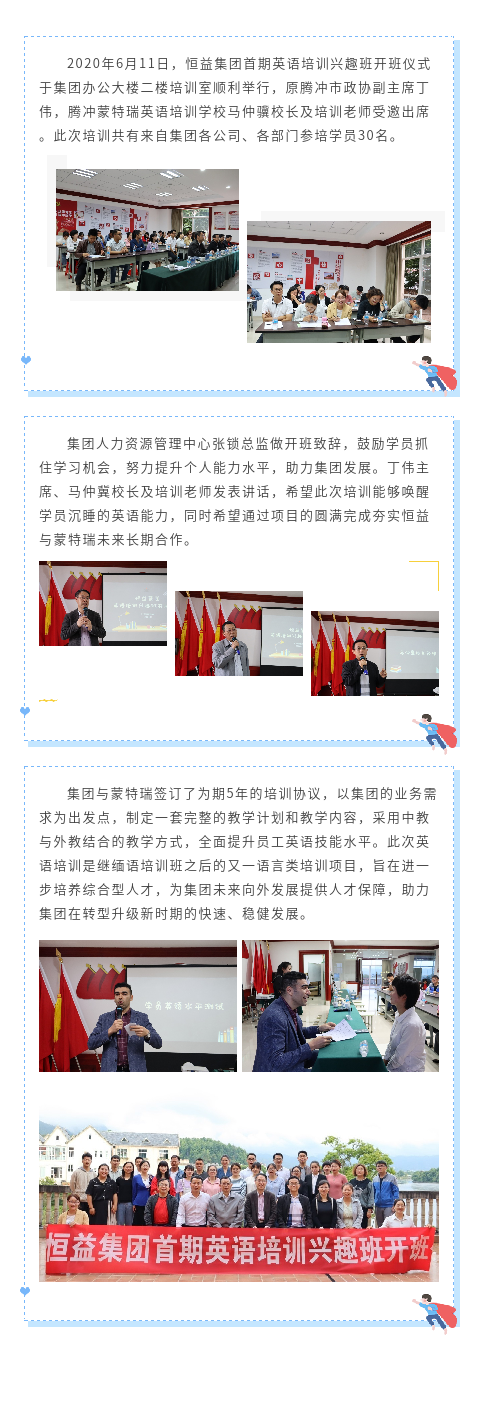 恒益集團(tuán)首期英語培訓(xùn)興趣班順利開班 來源: 瀏覽量:8487 日期:2020-06-12 分享到: 上一篇:恒益集團(tuán)2020年半年度經(jīng)濟(jì)運(yùn)行分析會(huì)隆重召開 下一篇:騰沖市恒益礦產(chǎn)品經(jīng)貿(mào)有限責(zé)任公司哨坡選廠脫水干堆、廢水循環(huán)利用技術(shù)改造項(xiàng)目 環(huán)境影響報(bào)告書 公眾參與第一次信息公示
