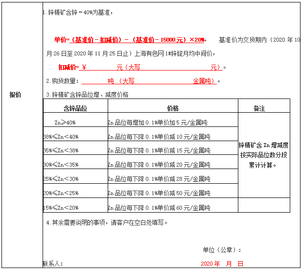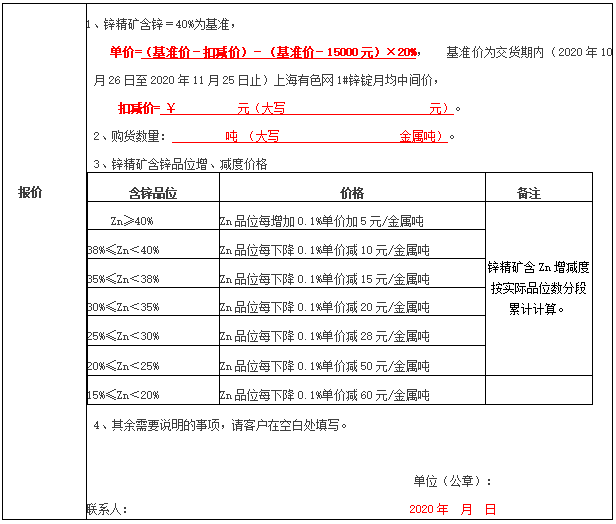 附件:報價單、硫化鋅精礦購銷合同