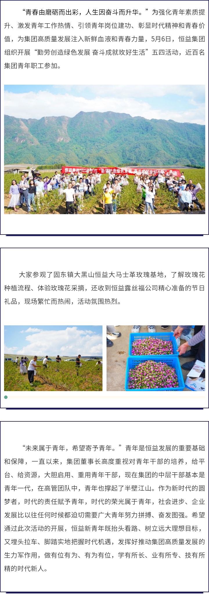 恒益集團組織開展“勤勞創(chuàng)造綠色發(fā)展 奮斗成就玫好生活”五四青年節(jié)活動 來源: 瀏覽量:5826 日期:2023-05-08 分享到: 上一篇:喜訊丨騰沖恒益東山農(nóng)業(yè)開發(fā)有限公司獲國家重點龍頭企業(yè)名單 下一篇:騰沖市珠寶玉石對外交流協(xié)會首屆年會暨翡翠產(chǎn)業(yè)發(fā)展交流會盛大召開