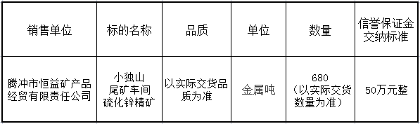 騰沖市恒益礦產(chǎn)品經(jīng)貿(mào)有限責任公司關(guān)于鋅精礦競價銷售公告(202307)號