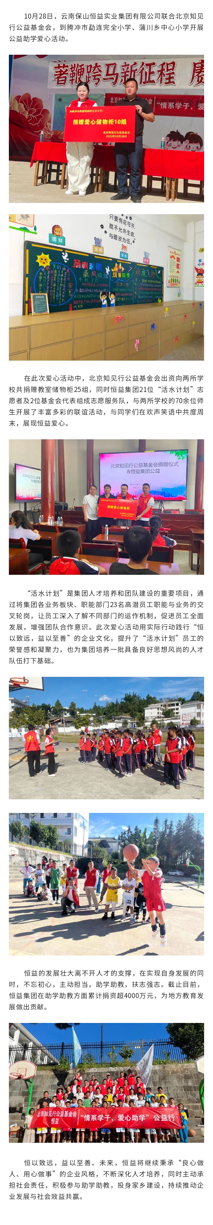 情系學(xué)子 愛心助學(xué)| 恒益集團(tuán)聯(lián)合知見行公益基金會(huì)開展公益助學(xué)愛心活動(dòng) 來源: 瀏覽量:5181 日期:2023-10-30 分享到: 上一篇:東山實(shí)訓(xùn)基地首期新員工培訓(xùn)圓滿結(jié)束 下一篇:滇灘鐵礦東排土場(chǎng)建設(shè)項(xiàng)目一期工程施工監(jiān)理招標(biāo)公告